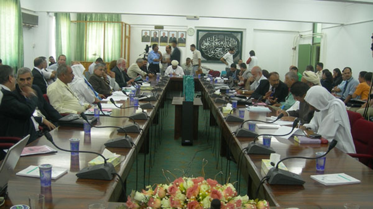 الأستاذ المهندس محمد الرضوان أثناء تقديم ورقته بعنوان"الهلال بين الحقيقة والشبهات"