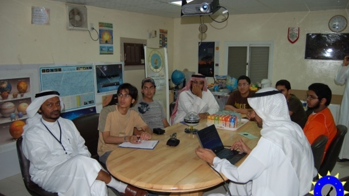 بعد ذلك قدم المهندس محمد آل رضوان عرضا تعريفيا بالجمعية ، شاهد بعده الزوار عرضا حيا للسماء يواسطة تلسكوب الجمعية.