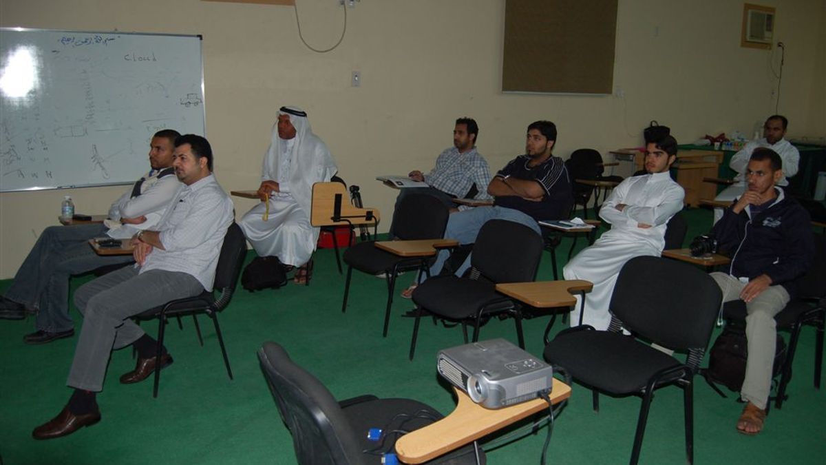 الاستاذ عبدالله العياضي والمتدربون اثناء التطبيق العملي