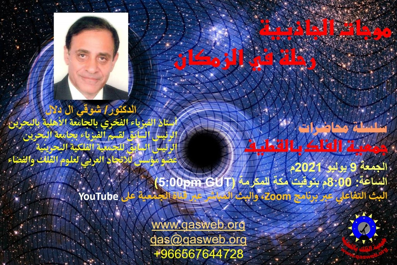 ضمن برامج وأنشطة جمعية الفلك بالقطيف في سبيل نشر الوعي الفلكي لهذا العام 1442هـ (2021م)، فإن الجمعية تنظم محاضرة علمية عبر منصة زوم وبالبث المباشر عبر قناة الجمعية على اليوتيوب، وتفاصيل المحاضرة على النحو التالي:
