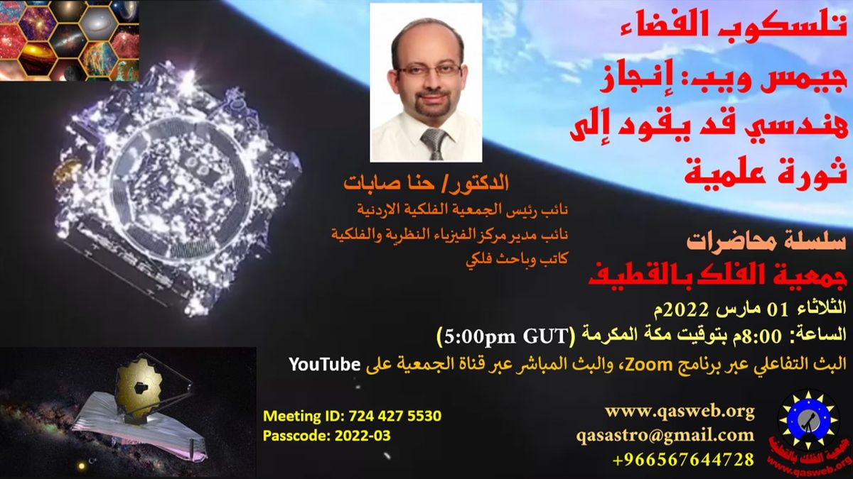 - المنظار الفضائي الفلكي جيمس ويب (JWT) خليفة المنظار هابل – الأستاذ عبدالرزاق البلوشي: 12 مارس 2021م.