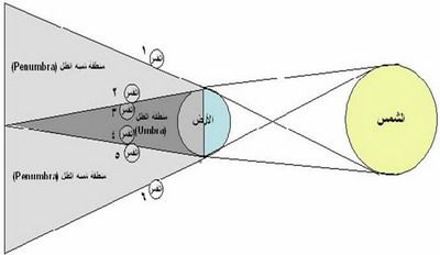سيكون نصف قطر مخروط منطقة الظل 4670 كم ، فيما يكون نصف قطر منطقة شبه الظل 8247 كم.