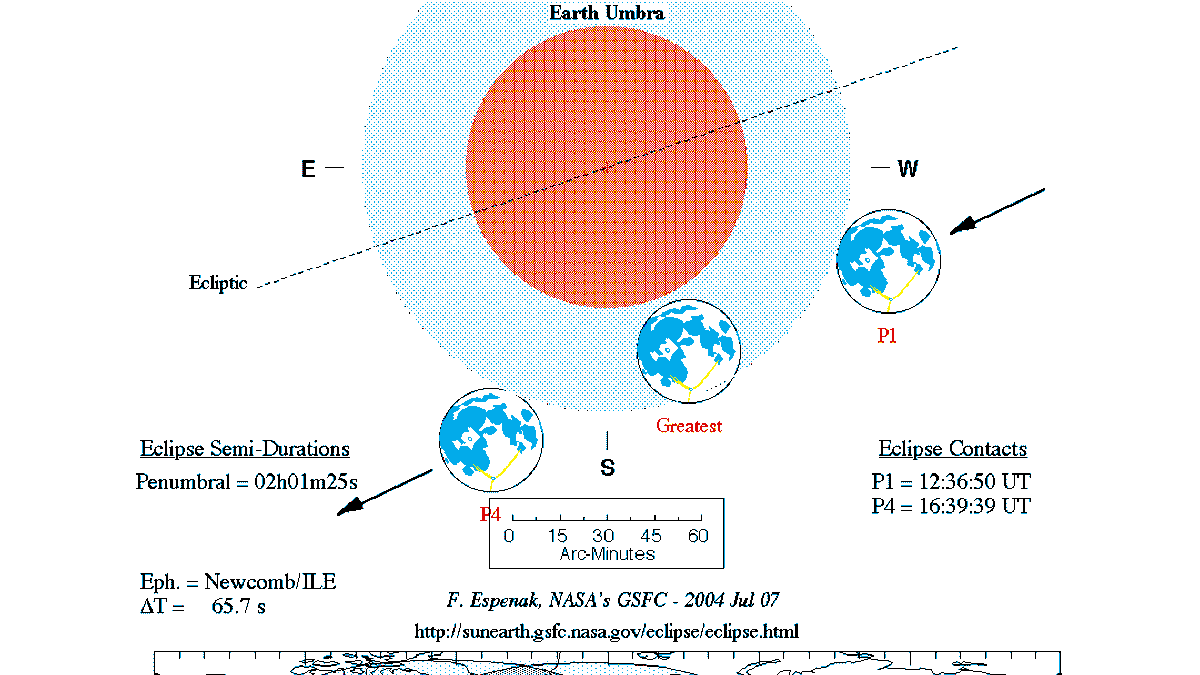 منتصف الخسوف الساعة 05:37 ثم يبدء بالإنجلاء.