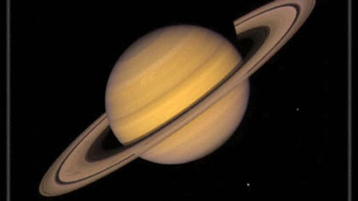 بواسطة المنظار سيبدو القمر تيتان قريبا من زحل والبعد بينهما نصف درجة.