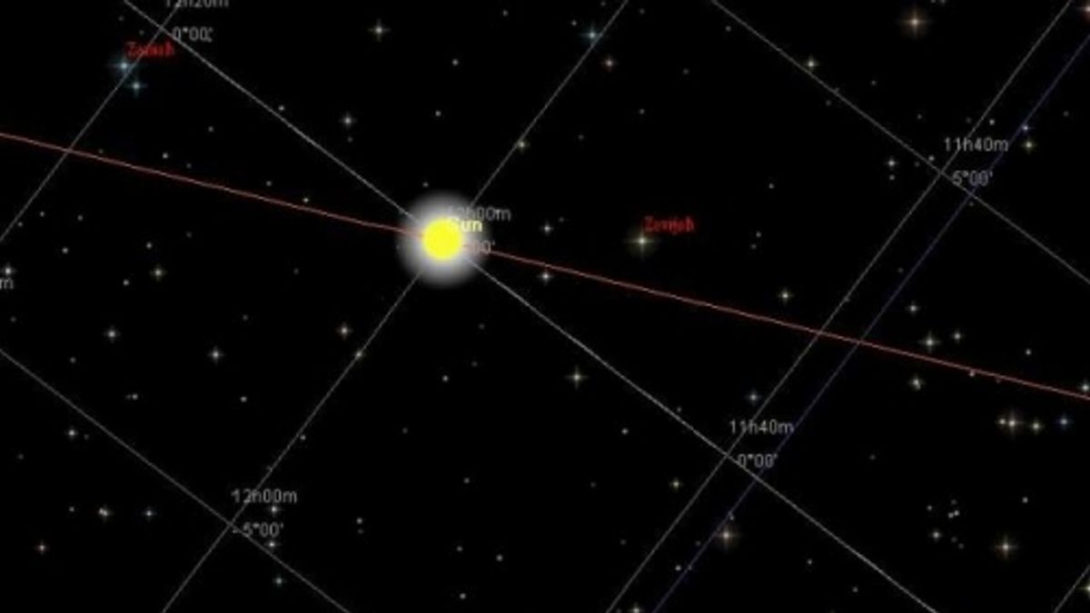 و تكون الشمس عمودية على خط الأستواء بدرجة ميل 0 ، واستقامة 12:00 ساعة.