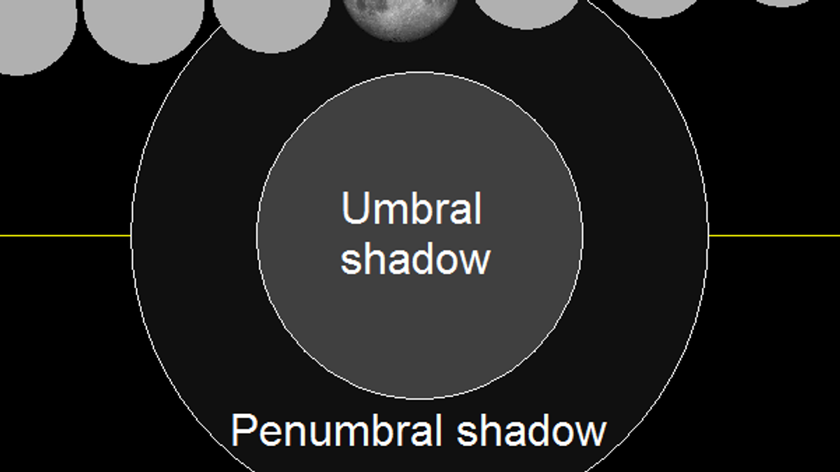 المناطق الحمراء الداكنة تشير إلى المناطق التي ستشهد خسوف شبه الظل من بدايته حتى نهايته. أما المناطق الحمراء الفاتحة فتشير إلى المناطق التي تشهد الخسوف إما عند شروق الشمس (يمين الخريطة) أو بعد غروب الشمس (يسار الخريطة). المناطق غير الملونة تشير إلى عدم إمكانية حدوث الخسوف فيها.