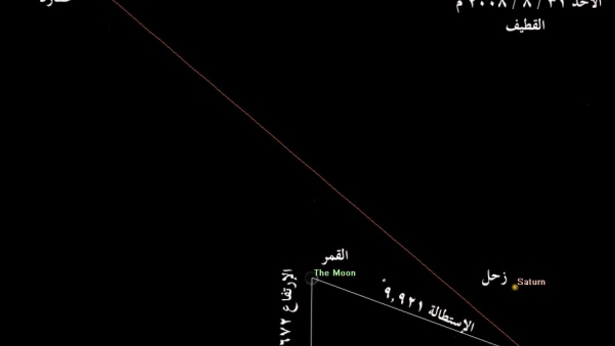 2- يغرب كامل قرص القمر من أفق القطيف عند الساعة 06:17:51 م بالتوقيت المحلي. أي يمكث 16دقيقة و 31 ثانية بعد غروب الشمس.