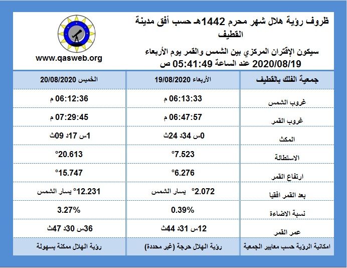 هلال شهر صفر 1442 هـ ونتيجة رصده