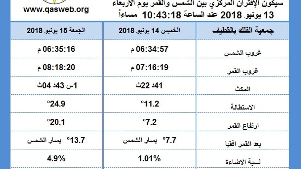 صفات هلال شهر شوال 1439هـ والنتيجة المتوقعة لرؤية الهلال في المنطقة كما يظهرها برنامج تقويم الجمعية