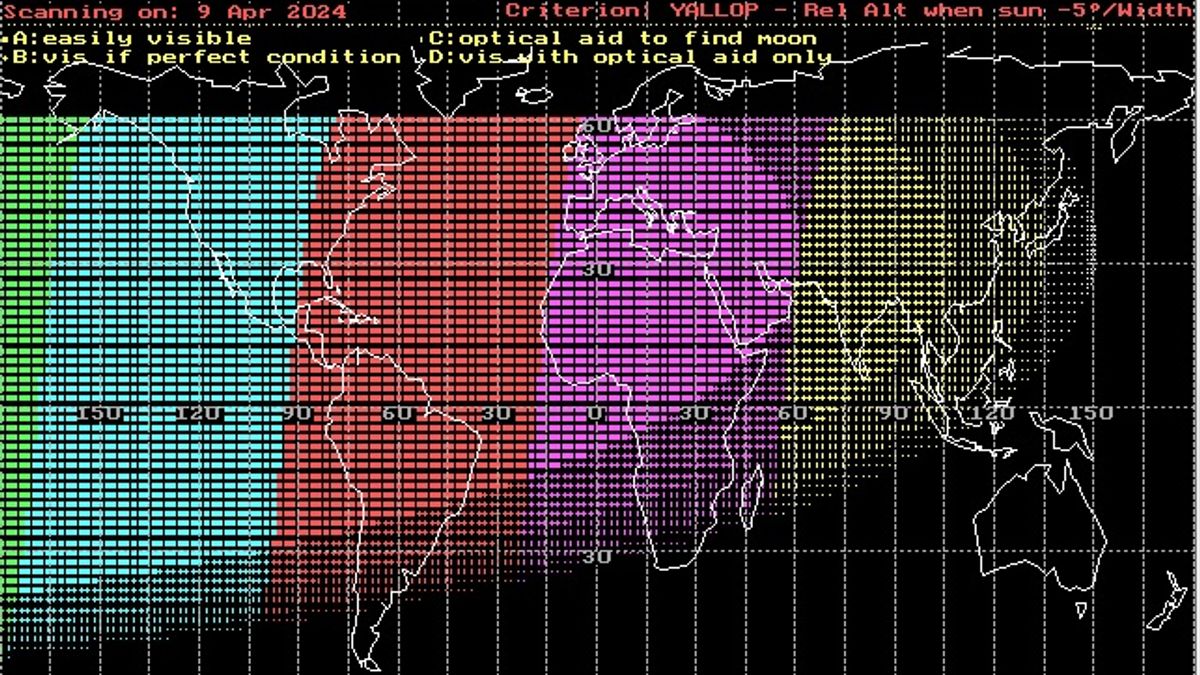 إن شاء الله ستكون رؤية الهلال بالعين المجردة بهذه الخصاص ممكنة بسهولةفي المنطقة حسب معايير الجمعية عند توفر الظروف الجوية المناسبة. وهكذا الحال في أغلب مناطق العالم تقريبا حسب معيار يالوب.