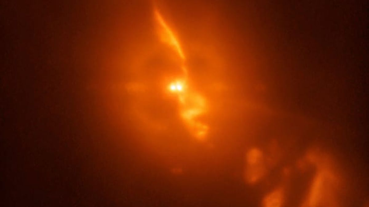 فالقزم الأبيض يسحب المواد من الطبقات الخارجية من رفيقه الاكبر ، ويمكن رؤية النفاثات للمادة النجمية من هذا العملاق الأحمر المحتضر و القزم الأبيض تندفع الى الخارج .