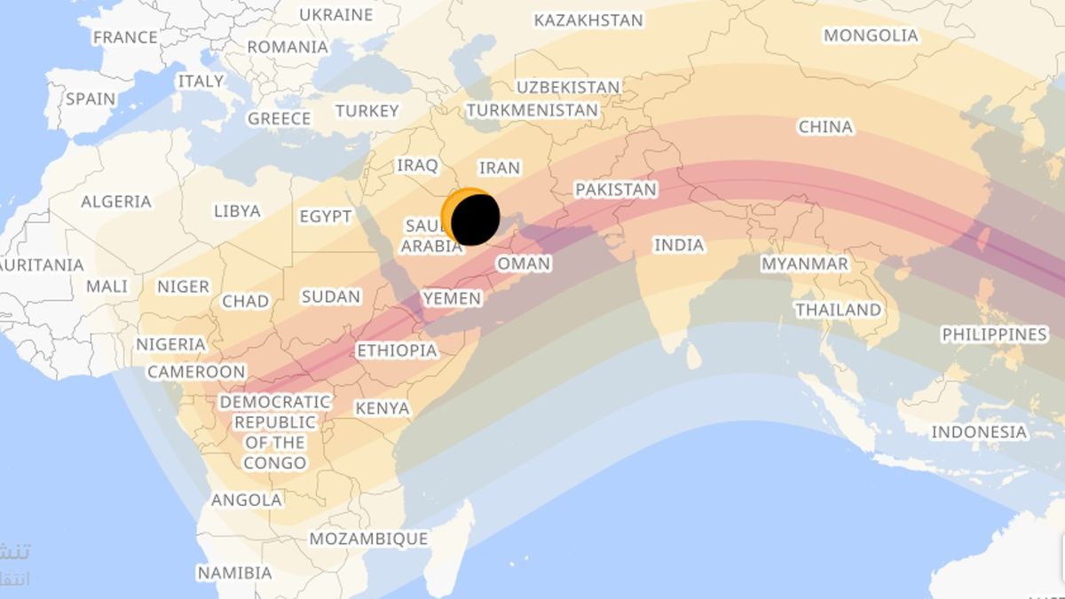 خارطة مناطق الكسوف المحلية