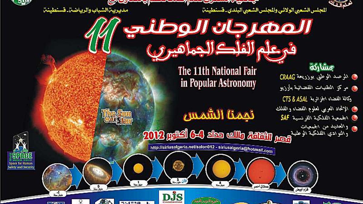 تحتضن مدينة قسنطينة المهرجـان الوطني العاشر في علم الفلك الجماهيري، وذلك في الفترة ما بين 4-6 أكتوبر-2012. هذا المهرجان في نسخته الحادية عاشرة، مفتوح للجمعيات والنوادي الفلكية والفلكيين المختصين من الوطن وخارج الوطن، وهو تحت الرعاية السامية لسيد والي ولاية قسنطينة وبالتنسيق مع الاتحاد العربي لعلوم الفضاء والفلك.