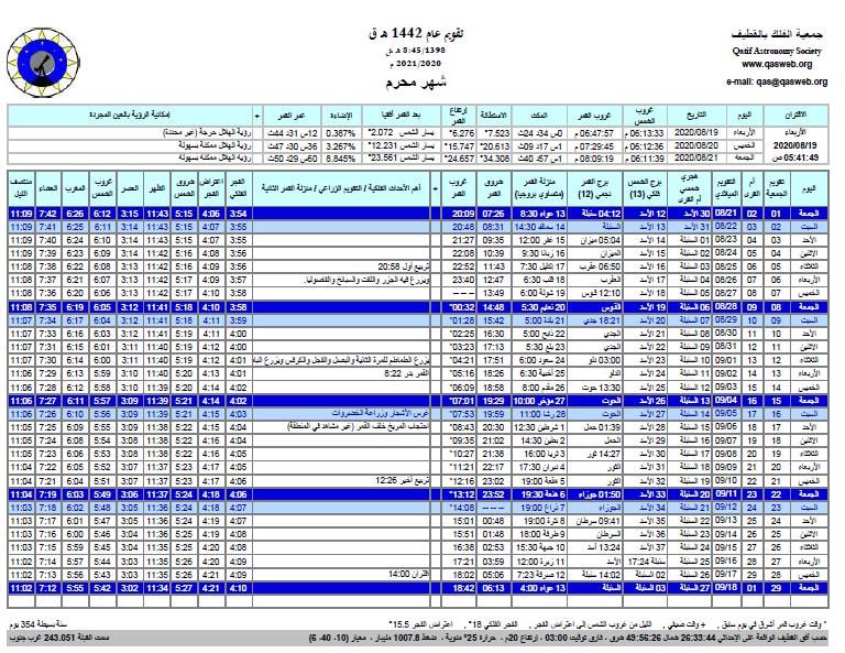 الجمعية تنشر تقويمها الفلكي والزراعي للعام 1443هـ (2021/2020م( لمنطقة القطيف وما جاورها